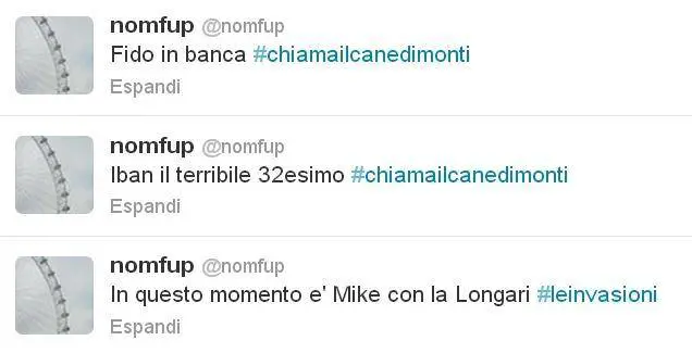 Ieri è esploso il tormentone: #chiamailcanediMonti è adesso l'ossessione di Twitter, insieme a #Yeswecane. E via con le proposte degli utenti: Angela, (in onore della Merkel), Spread, Iban Il terribile, Pierferdi (Casini) e infine Fido Bancario. Su Facebook il grido di allarme: «Lo farà morì de fame!». Qualcuno consiglia: «Non votatelo, metterà l'Imu sulla prima cuccia».