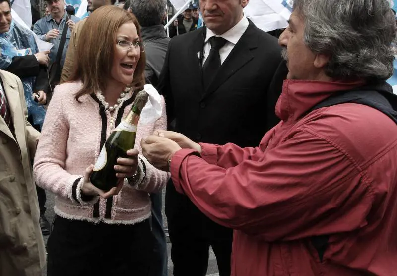 A guardar bene, però, ci si accorge che il volto non è quello della Marcegaglia. Ai più attenti non sfuggirà la somiglianza con quella foto che ha ingannato i giornali. La donna che se ne va a spasso per le strade di Roma, infatti, non è la leader degli industriali, ma Sabina Guzzanti in una delle sue imitazioni meglio riuscite.