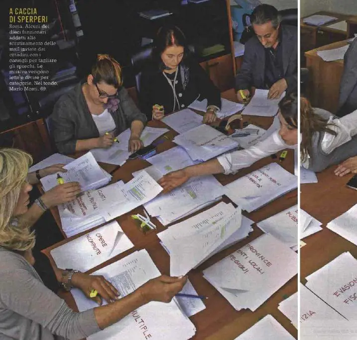 Tutte rigorosamente stampate. Centinaia di fogli di carta e dieci persone pagate per leggerli tutti. Non sarebbe stato meglio catalogarle direttamente sul pc? L'iniziativa non doveva servire a tagliare gli sprechi?