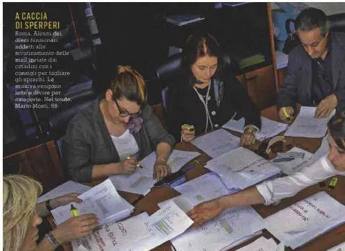 Per dimostrarsi davvero vicino alla sua gente, il premier ne ha inventata una delle sue: la situation room. Ma si capisce: essendo molto british, city, Moodys e Goldman Sachs, che poteva inventare? Il centro ascolto? La stanza della posta? Langolo di zio Mario? Macché: ha inventato la situation room. Che cosè? È il posto della spending review. Of course. E così, alla faccia della perfida Albione, dieci funzionari (dieci!) di Palazzo Chigi si fanno immortalare dal settimanale patinato mentre compulsano avidamente pile di fogli su cui stanno scritte le rimostranze dei cittadini. E poi dividono i fogli in faldoni (i faldoni!) con su scritto in pennarello rosso largomento: Enti pubblici, Opere incompiute, Province, Giustizia, Costi della Politica. Finita la divisione, la lotta agli sprechi si può dire compiuta. Vincere e vinceremo (almeno sulla carta).