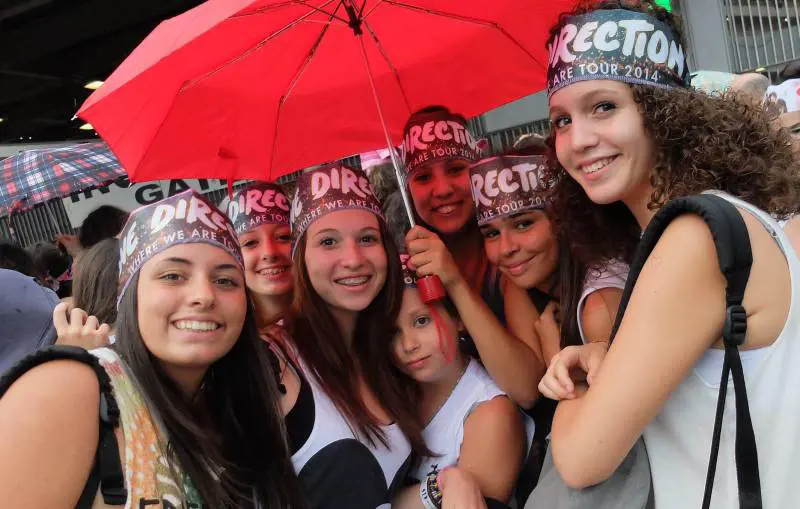 Il pranzo in autogrill invece che un momento di tregua diventa una liturgia «direzionale». Sosta verso Piacenza, nel ristorante ragazze si aggirano con vassoi pieni di quasi niente (la fame è poca, gli 1D sono meglio di Dukan) scortati da scodinzolanti genitori invece affamati assai. Giochiamo a riconoscere le directioner ma il passatempo perde presto interesse: sono tutte directioner o sventurati congiunti (un'altra prece). Short, maglietta 1D, braccialetto. Colpiscono gli sguardi delle ragazze: fissi, lugubri, scavati dalla tensione. Non si salutano tra loro, non c'è condivisione, la guerra è guerra. A stasera, ripeto, non ci arriviamo. Ecco Milano. La superiamo. Sosta a Olgiate Olona, dove abbiamo l'albergo, poi dai genitori dell'altra ragazza a Busto Arsizio, in auto a Lampugnano e di lì a piedi a San Siro. Piove. Mia figlia dice, con un filo di voce: sono le directioner che non sono potute venire che piangono. Dopo un po' esce il sole. Faccio lo spiritoso: questi sono i genitori di quelle directioner che sorridono. Rido da solo. Siamo in tanti.