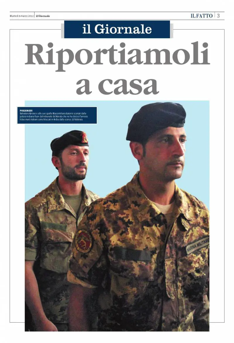 Vi abbiamo offerto la possibilità di fare sentire la vostra, e la nostra, voce con le autorità di Nuova Delhi e voi avete risposto con una partecipazione sorprendente: settemila mail hanno intasato la casella di posta dell'ambasciata chiedendo la scarcerazione. Martedì, in edicola con il Giornale, avete trovato un poster dei due marò e vi abbiamo chiesto di esporlo, domani ne troverete un altro.