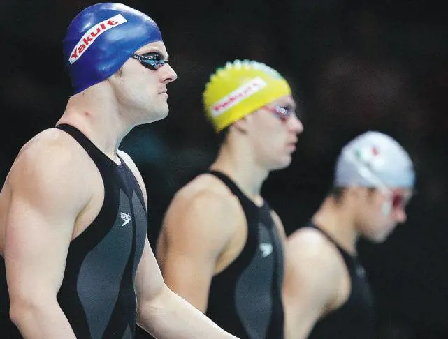 Dentro lo spogliatoio, insieme a un’altra dozzina di cronisti inviati da mezzo mondo, è subito panico: non riuscirò mai a indossarlo. In mio aiuto, per fortuna, arrivano i consigli di Grant Hackett, 4 medaglie olimpiche e una manciata di ori mondiali: infilo il piede in un sacchetto di plastica, risvolto la parte finale del body e supero il primo problema. Purtroppo, il primo di una lunga serie. Riesco a infilare il costume con una certa disinvoltura fino alle cosce; da qui in poi è un dramma. Il body di salire sopra il bacino proprio non vuole saperne. Come se non bastasse stringe tantissimo all’altezza delle ginocchia, impedendomi di camminare liberamente. In settimana avevo sorriso leggendo del nuotatore brasiliano che, infilandosi il costume era caduto fratturandosi gli alluci: adesso, non mi fa più tanto sorridere. Come lo capisco.