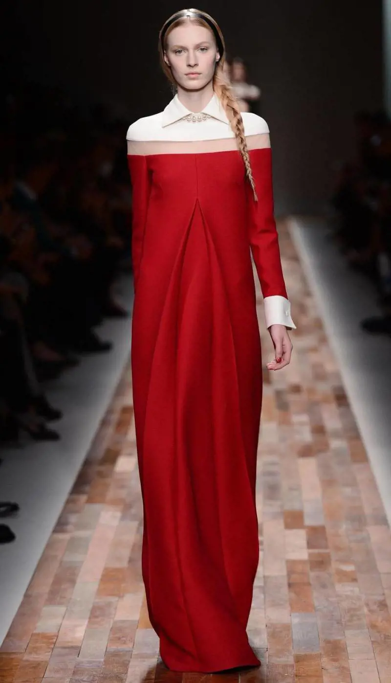 Il rosso della Santa Prassede di Vermeer invece del rosso Valentino. Ecco una delle tante belle sorprese offerte dall'incantevole collezione del prossimo inverno in passerella ieri pomeriggio a Parigi. Maria Grazia Chiuri e Pierpaolo Piccioli sono partiti dalla stupenda mostra sul secolo d'oro dell'arte olandese alle Scuderie del Quirinale fino allo scorso gennaio per ricostruire con i vestiti quell'atmosfera di grazia, rigore e sensuale compostezza che permea i quadri del cosiddetto Maestro di Deft. Da qui alla creazione di un vero e proprio mondo il passo è stato breve ma veramente ardito perché ciò che ha colpito i due designer non sono tanto gli abiti e le cuffie delle signore ritratte in quei bellissimi quadri, quanto l'idea che sta dietro alla rappresentazione delle donne nei momenti privati: rendere sublime la normalità. Tradotto in moda tutto questo significa esaltare il volto con meravigliose scollature, le stesse di quando le donne venivano chiamate madonne ma con un'interessante studio di costruzione all'altezza delle spalle che aggiunge grazia senza togliere vigore ai muscoli femminili dei nostri giorni. I celebri pizzi fiamminghi di Anversa oppure Bruges sono riprodotti in pelle e questo colpo di modernità nel materiale permette di riproporre delicate collarette che avevano la precisa funzione di illuminare i severi abiti scuri delle seguaci di Calvino.