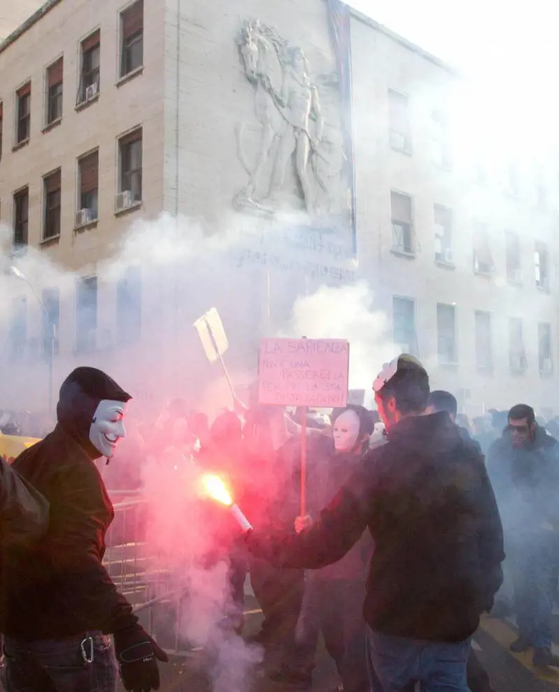 Di tutto e di più. All'insegna del caos e dei tafferugli la quarta giornata della protesta del movimento dei Forconi, scatenata contro l'oppressione fiscale e i privilegi della casta politica, che anche ieri, in tutto il Paese, è stata caratterizzata da blocchi stradali, cortei, presidi e manifestazioni. Sollevazioni spontanee o programmate che, trasversalmente, hanno unito, ancora una volta, agricoltori, autotrasportatori, operai, disoccupati e studenti. Con ore ad altissima tensione, come quelle che si sono vissute all'università la Sapienza di Roma durante la protesta degli studenti contro la conferenza nazionale sulla Green economy in aula magna. I ragazzi hanno sfondato le transenne e lanciato bombe carta, salendo poi anche sul tetto della facoltà di Fisica. Ci sono state cariche della polizia e sono stati fermati due giovani. Tutto ciò mentre la capitale era sotto scacco anche per le proteste dei «forconisti» e degli operai della Fiom che sono sfilati in varie parti della città.