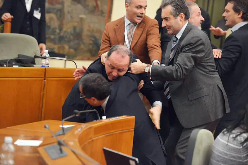 Torino - A Torino come a Roma, il consiglio regionale si trasforma in un ring. Il clima ieri mattina a Palazzo Lascaris, sede dell'assemblea piemontese, era rovente. In ballo c'è un'inchiesta sui rimborsi dei consiglieri e dello stesso presidente della Regione Roberto Cota: in 43, compreso il governatore, sono sotto indagine. La scintilla è scoppiata mentre stava parlando l'ex presidente della Regione, Mercedes Bresso. Un intervento che ha scatenato la reazione del capogruppo di Fratelli d'Italia Franco Maria Botta, che ha perso la calma e mentre Bresso stava parlando si è avvicinato con fare deciso nel tentativo di spostare il microfono come a volerla interrompere. Sono volate parole grosse e l'ex «zarina» è stata difesa dal capogruppo del Pd, Aldo Reschigna. A quel punto si è accesa una bagarre, con il vice presidente del Consiglio, Roberto Placido, che ha tentato di fare da paciere. È finita con Placido e Botta che sono ruzzolati terra, sotto gli occhi del presidente del consiglio regionale, Valerio Cattaneo. Botta, probabilmente innervosito dalle notizie che sono circolate in questi giorni riguardo a rimborsi contestati relativi all'acquisto di capi di abbigliamento pregiati, in mattinata se l'era presa anche con i giornalisti appellandoli come «topi di fogna». Una frase che non è andata giù al sindacato di categoria, l'Associazione Stampa Subalpina, che in un comunicato ha definito «inaccettabili» le frasi di Botta dichiarandosi «pronta a costituirsi anche in giudizio, nel caso in cui i colleghi che hanno seguito in questi mesi le indagini sul caso rimborsopoli volessero tutelare la loro immagine professionale». Alla fine resta l'amarezza per una triste sceneggiata alla quale hanno evitato di assistere - per una pura casualità - i della scuola elementare Michele Lessona, che erano stati invitati ad assistere ai lavori dell'aula proprio per imparare come si funziona la politica. Nel suo intervento Cota si è difeso denunciando di essere vittima di un vero e proprio «attacco mediatico all'istituzione regionale e quindi alla democrazia rappresentativa». Il riferimento è ai dettagli, pubblicati dai quotidiani e diffusi dai siti di news, dei rimborsi che la magistratura torinese contesta a parecchi consiglieri. Abiti costosi e alla moda acquistati nelle più prestigiose boutiques di Torino, spese incontrollate da gastronomi, estetisti e macellai, ma anche da profumieri e da fiorai. Senza considerare pranzi, cene, videogiochi, dvd e tosaerbe. Circostanze per le quali ora i consiglieri interessati dovranno difendersi in tribunale. Cota non ci sta: «Non sono qui per difendere me stesso ma l'istituzione del Consiglio regionale e dei suoi eletti, eletti direttamente dal popolo». La tesi del centrodestra è che la maggior parte delle contestazioni sarebbero riferite a circostanze prive di dolo.