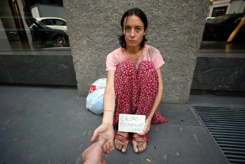 Un sacchetto di plastica con dentro quattro stracci e un cartoncino con una scritta incerta e scolorita che dice «1 euro per mangiare. Grazie». È una delle prime cose che guardano i passanti prima di decidere se darti qualcosa. In questo, gli uomini sono più generosi, le donne schive e diffidenti, si stringono la borsetta sotto il braccio e se ne vanno mentre sussurrano tutto il loro disappunto pensando di non essere capite. «Ma non ti vergogni a vestirti così? Vai a lavorare». «Un euro? Non ce l’ho neppure io. Questa gente non sa nemmeno cosa voglia dire essere poveri».