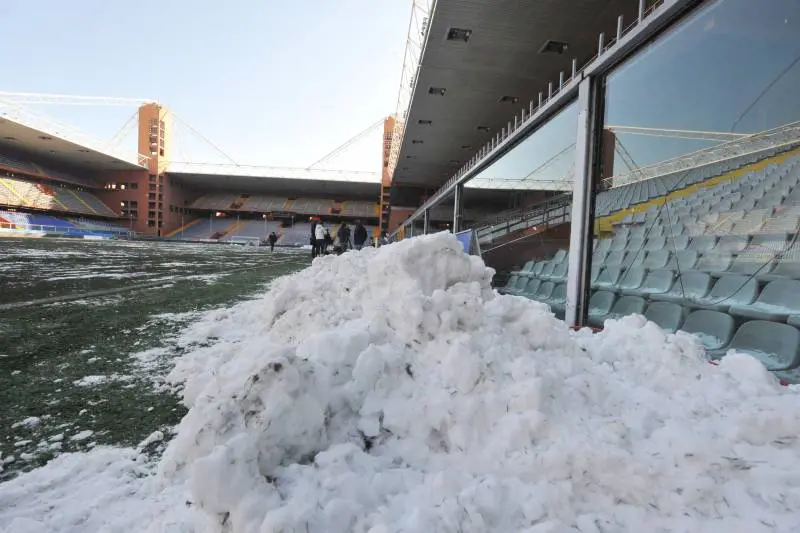 Genoa-Bari rinviata Neve al Luigi Ferraris di Genova. La partita Genoa-Bari è stata rinviata a data da destinarsi. Lo ha ufficializzato la Lega calcio che "preso atto del perdurare dell'eccezionale ondata di maltempo che ha colpito Genova" sulla base di quanto fatto sapere circa "l'assenza delle condizioni minime di sicurezza per l'agibilità degli impianti" ha disposto il rinvio della partita in programma oggi in una data che verrà fissata successivamente.
