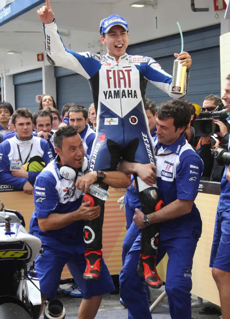 Nonostante questo, però, nessuno è stato in grado di batterlo. Non Daniel Pedrosa, il suo primo nemico, non Valentino Rossi, il suo primo riferimento perché ha una moto identica. Ma gomme diverse. «Il passo in avanti fatto dalla Michelin in così poco tempo - si rammarica Rossi - è veramente incredibile, nessuno se lo poteva aspettare. E questo fa sorgere un sacco di dubbi sul comportamento della Michelin l'anno scorso: forse si erano presi un anno di vacanza... Per quanto riguarda Lorenzo, ci deve ringraziare per il bel lavoro di messa a punto che abbiamo fatto in passato con la Yamaha e le Michelin. Comunque, è un pilota veramente tosto».