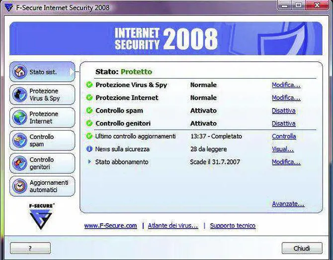 Maggiore il tempo passato in rete, maggiori i rischi per gli utenti, tra virus, spyware e malware. Ad essere più esposti sono soprattutto i bambini che ormai utilizzano abitualmente il pc per navigare spesso senza la supervisione degli adulti. Tra i prodotti più efficaci in questo senso cè Internet Security 2008 di F-Secure che introduce quattro categorie (violenza, viaggi, sport e dating) per il controllo dell'accesso ai contenuti non adeguati e per la creazione di liste di mete web sicure (whitelist) configurabili direttamente dal pannello di controllo di Windows Vista con possibilità di impostare diversi livelli di accesso a diversi contenuti a seconda delletà degli utenti.