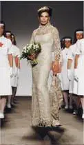 Lorenzo Riva è uno degli ultimi couturier che ancora sanno costruire lo strascico tenendo conto sia delle proporzioni della sposa sia di quelle della navata della chiesa. Stavolta ha saputo creare anche un indimenticabile abito da ballo verde chiaro con orlo ripreso da rose di stoffa. Peccato però che la sua sfilata per pochi intimi all'hotel Esedra sia stata funestata da inutili polemiche usate al posto della colonna sonora.