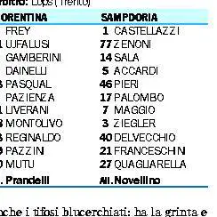 Comunque sia oggi a Firenze sarà l'ultima gara della vecchia Samp (in attesa della sentenza per Francesco Flachi prevista per domani) e sarà una squadra di baby, soprattutto in panchina. I sette rincalzi infatti, complici anche gli infortuni di Zotti, Parola, Volpi, Falcone, Bazzani, saranno: Fiorillo, Ciancio, Enow, Cucciniello, Koman e Romeo.
