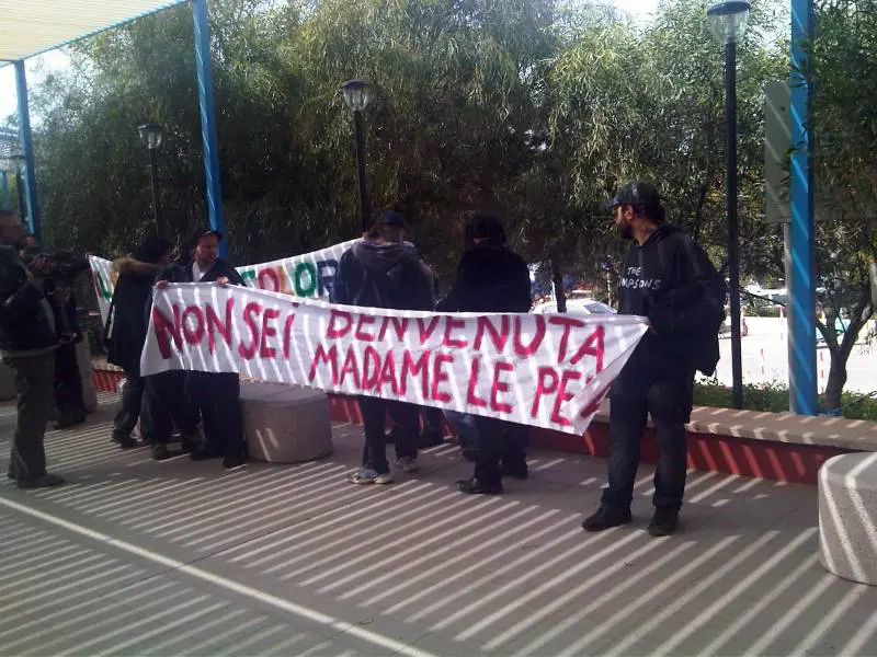 E il pd cavalca la protesta "Un inseguimento" della leader del Front National, Marine Le Pen, e del’eurodeputato leghista Mario Borghezio, in visita oggi a Lampedusa. Ad annunciarlo è il capogruppo del Pd nel consiglio comunale dell’isola, Peppino Palmeri. "Abbiamo subito contrastato questa visita - ha detto il consigliere - perchè sono venuti qua solo a sfruttare la situazione: la Le Pen è candidata alle presidenziali francesi, Borghezio sappiamo coma la pensa sul Meridione. È una speculazione verso i lampedusani e soprattutto verso i migranti". Palmeri ha anche chiesto al governo di tornare al "modello Lampedusa": "Abbiamo sempre sostenuto lo spirito di accoglienza dei lampedusani, che è noto a tutti ma chiediamo al governo di non fare di Lampedusa un centro di accoglienza a cielo aperto: accogliamo i migranti ma come accadeva nel 2003 e nel 2007, entro 48-72 ore devono trasferiti altrove"