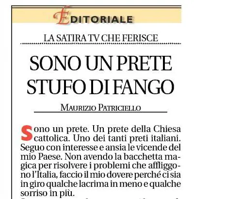 E che in Italia ci sia più di qualcuno che cominci a farsi avanti e, senza ridere, dica chiaro e tondo che non si può continuare a infangare impunemente quegli onesti cittadini dell’Italia e del mondo che sono i preti.