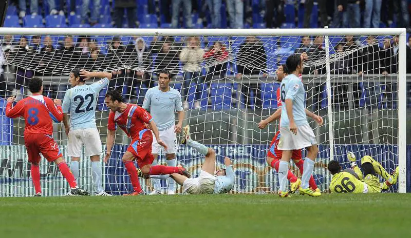 Si chiude in pareggio La ripresa si apre con un numero di alta classe di Zarate che in un fazzoletto si destreggia a mette la palla sotto la traversa, ma Andujar ci arriva e manda in angolo. Il match prosegue col copione del primo tempo: Lazio all’attacco e Catania con 10 uomini dietro la linea del pallone con qualche puntata in contropiede. Al 31’ è ancora Zarate con un tiro a giro a sfiorare la rete del vantaggio.