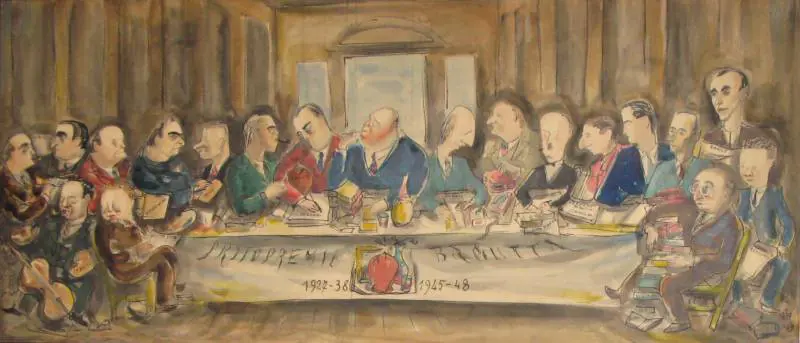 Ah. L'atto di fondazione del premio, scritto su un foglio di carta da Adolfo Franci (la «carta gialla»), fu affisso a una parete del locale, come poi avverrà per le famose «liste», i disegni e le caricature dei vari personaggi presenti alle varie sedute del premio fatti sulla carta del menu del Bagutta dagli artisti del gruppo, soprattutto Mario Vellani Marchi e Giuseppe Novello. Un vero tesoro fatto di oltre 400 opere, ritratti di Lucia Bosé e Fausto Coppi, di Toscanini e Wanda Osiris, di Montale e Italo Balbo, appesi lì, sui muri della trattoria, che andavano occupando ogni angolo del locale, stipiti e copricaloriferi compresi, anno dopo anno.