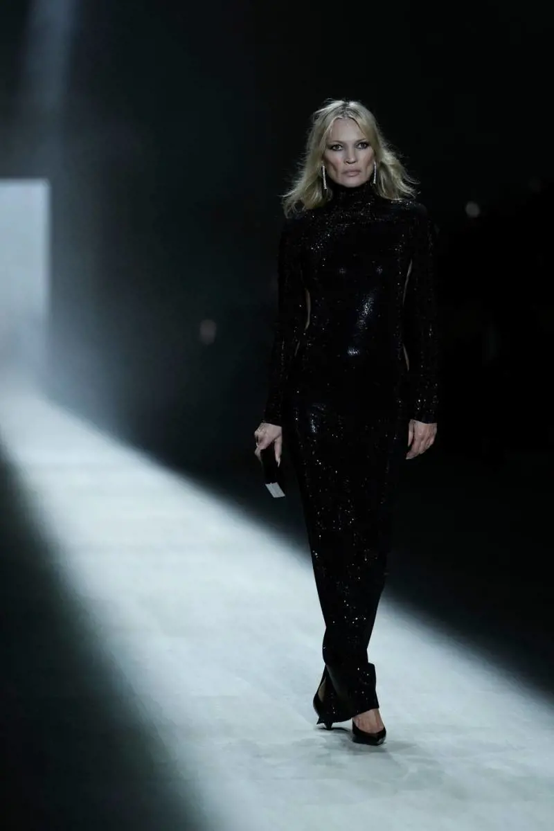 Dobbiamo a lui il discorso più articolato e intelligente su questo show in cui le modelle sembrano spesso vestite come stelline di Onlifans con scarpe e borse di rara bellezza, mentre gli uomini oscillano dallo stile Maranza a quello iper palestrato di Braccio di Ferro. "Demna ha sicuramente un punto di vista tutto suo e questo è un bene perché la moda deve far discutere: è già successo quando Tom Ford mise le donne sui tacchi 12 e molti chiedevano ma da dove arriva questo texano perché eravamo tutti abituati allo stile sognante e sussurrato di Romeo Gigli" dice il designer romano che oggi è il direttore creativo di Valentino ma dal 2002 al 2022 ha lavorato in Gucci, gli ultimi sette dei quali baciati da un enorme successo di critica e pubblico. Inevitabile a questo punto dargli ragione anche perché in quasi tutte le uscite donna aleggia quel certo non so che di sexiness che nessuno ha fatto come il grande Tom e il finale è un omaggio plateale al suo lavoro reso da Kate Moss che indossa un abito da sera castigato davanti ma scollatissimo sulla schiena per far vedere la versione femminile del cosiddetto GG string.