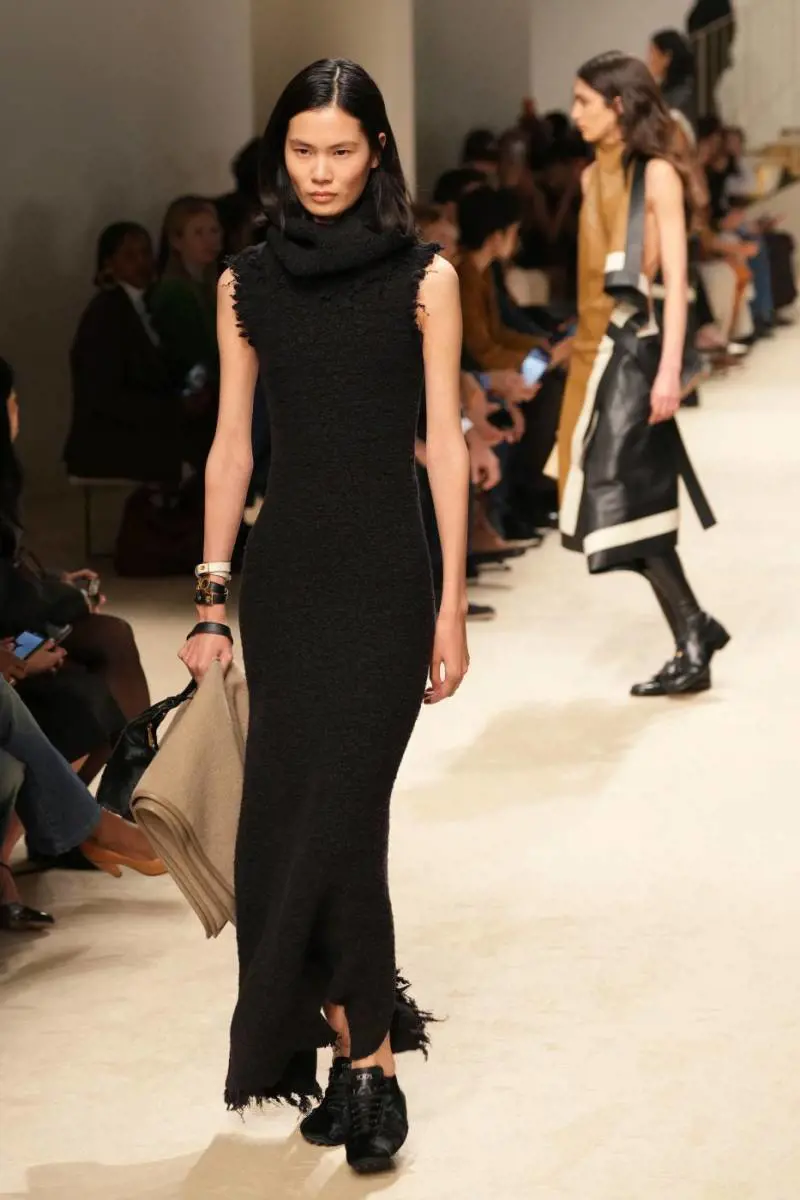 Spiega di aver avuto voglia di pensare a dei capi che riportassero l'attenzione sul corpo, che suggerissero un senso di protezione avvolgendolo e non costringendolo. Ha lasciato il focus sulla pelle che è riuscito a rendere morbida e impalpabile come un foulard e ha creato dei maglioncini in cashmere ai quali ha appositamente dato l'effetto esile, un po' come se chi li indossa ci fosse cresciuto dentro. Il direttore creativo di Tod's, Matteo Tamburini, firma la nuova collezione donna del prossimo Autunno-Inverno 26/27 e porta in passerella l'irrimediabilmente chic. Corpo, protezione e ricordo. Ma anche i gesti e il tatto. "L'idea era anche di partire da capi e oggetti che fanno parte di una memoria storica quindi non rivoluzionare ma lavorare su cose che parlano alla memoria di ogni persona quando l'indossa" racconta Tamburini.
