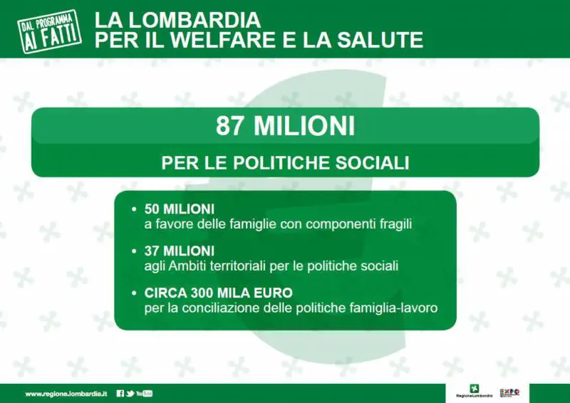 "E' un impegno concreto che va nel segno del tradizionale orientamento della Giunta - ha detto il Presidente Maroni - e cioè la concretezza, poche chiacchiere e tante risorse a sostegno delle persone fragili e delle famiglie”.
