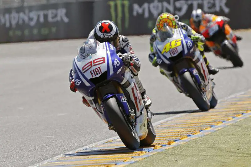 Asticella, dunque, che più alta non si può: lo stracampione e lo straerede a darsele di santa ragione, gli altri praticamente a far da spettatori (di certo Stoner finito di nuovo per margherite) e quelle due Yamaha, una identica all’altra in tutto e per tutto, a far da giudici super partes. Che spettacolo.