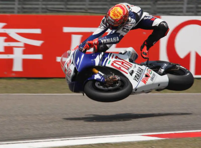 La dinamica dell'incidente, avvenuto nella chicane dopo la lunghissima curva a destra a quasi 360° che segue il rettilineo di arrivo, è abbastanza chiara: la gomma posteriore perde aderenza e Jorge viene sparato in aria, un po' come succedeva una volta appena toccavi il gas con le vecchie e più scorbutiche 500 2T. Una chicane che lo spagnolo ha affrontato a circa 90 km/h, anche se si tratta solo di un'ipotesi, perché nel violento impatto con l'asfalto è andato distrutto l'equipaggiamento per l'acquisizione dati. «Stando alle immagini televisive - prova a spiegare Valentino -, gli si è alzato l'anteriore della moto e quando la ruota ha ritoccato l'asfalto, tutto il carico è stato trasferito alla gomma posteriore che, inevitabilmente, ha perso aderenza. Probabilmente, Jorge è stato troppo aggressivo nel cambio di direzione ed essendo il primo giro dopo l'uscita dai box il pneumatico era freddo. Non credo però che si sia spaventato più di tanto, perché un pilota prende paura solo quando si fa molto male».