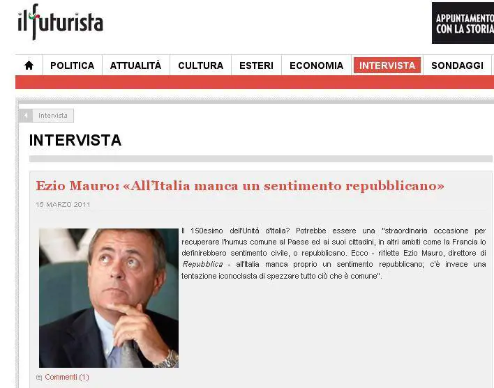 Ora anche i finiani hanno il loro pensatoio radical chic. Finalmente hanno trovato il guru per il loro Futuro e la loro Libertà: Ezio Mauro. Dal ghetto della destra neofascista alla legittimazione della sinistra antiberlusconiana: un avvitamento acrobatico. L’ultimo nato tra i think tank in cachemire è il Futurista, un quotidiano on line con il nome a destra e la testa dalla parte opposta. Il direttore-animatore di questo sito è lo stesso Filippo Rossi che ha gestito fino al momento della chiusura FFwebmegazine, il foglio on line della fondazione di Fare Futuro. Poi i soldi erano pochi e le critiche tante così il sito ha chiuso i battenti. Rossi si è risentito, ha gridato alla censura e poi ha fondato il Futurista.