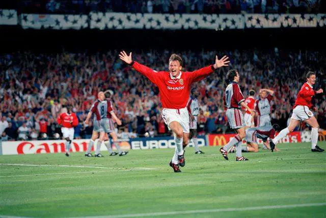 Dicevamo di quella famosa finale, giocata a Barcellona il 26 maggio del '99, arbitro Collina, ribaltata da Sheringham al 91' e Solskjaer al 93' dopo il gol di Basler al 6' che aveva illuso il Bayern per tutta la partita. Il Manchester, guidato anche allora ovviamente da sir Alex Ferguson, giocava con Schmeichel, G.Neville, Johnsen, Stam, Irwin, Beckham, Butt, Blomqvist /Sheringham), Giggs, Cole (Solskjaer) e Yorke. Il Bayern di Hitzfeld rispondeva invece con Kahn, Linke, Matthäus (Fink), Kuffour, Babbel, Jeremies, Effenberg, Tarnat, Basler (Salihamidzic), Jancker, Zickler (Scholl).