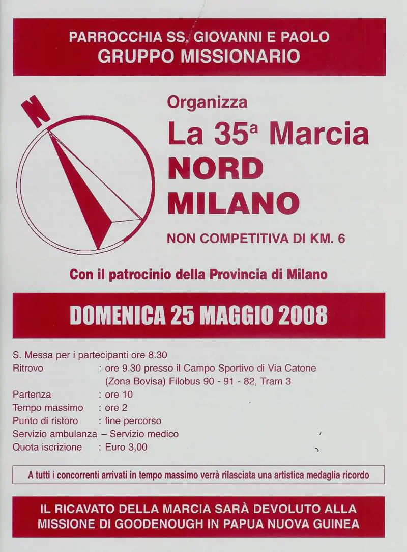 Milano - Ci sono diversi modi per aiutare chi è meno fortunato. Uno di questi è mettersi a correre, anzi in marcia. Proprio per questo il 25 maggio si rinnova l'appuntamento con la tradizionale "Marcia Nord Milano", una corsa non competitiva di sei chilometri organizzata dal Gruppo missionario della parrocchia dei Santi Giovanni e Paolo di Milano (zona Bovisa). Siamo arrivati, ormai, alla trentacinquesima edizione. Segno che l'idea di coniugare lo sport, lo stare insieme e la solidarietà è apprezzata da un numero sempre maggiore di persone.