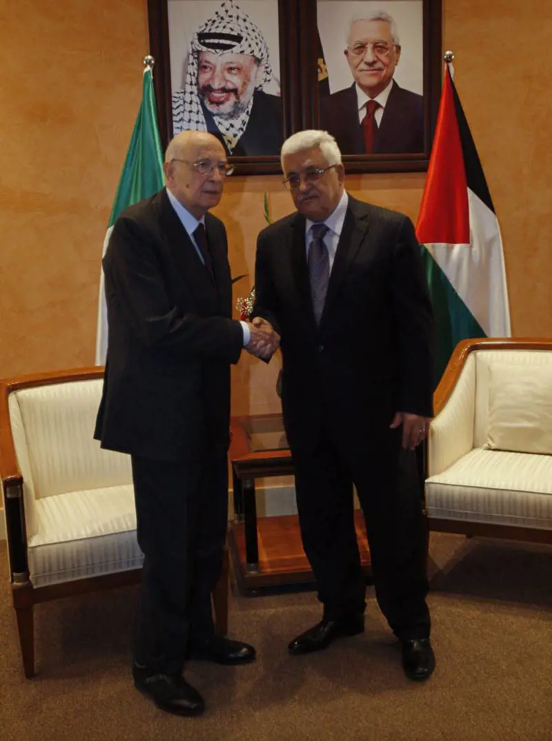 Betlemme - Il presidente della Repubblica Giorgio Napolitano ha annunciato la decisione del governo italiano di elevare il rango del rappresentante diplomatico dell’Autorità nazionale palestinese in Italia riconoscendogli il titolo di ambasciatore. L’annuncio a Betlemme dopo un colloquio con il presidente palestinese Abu Mazen che ha commentato: "E' un altro regalo che ci fa l’Italia".