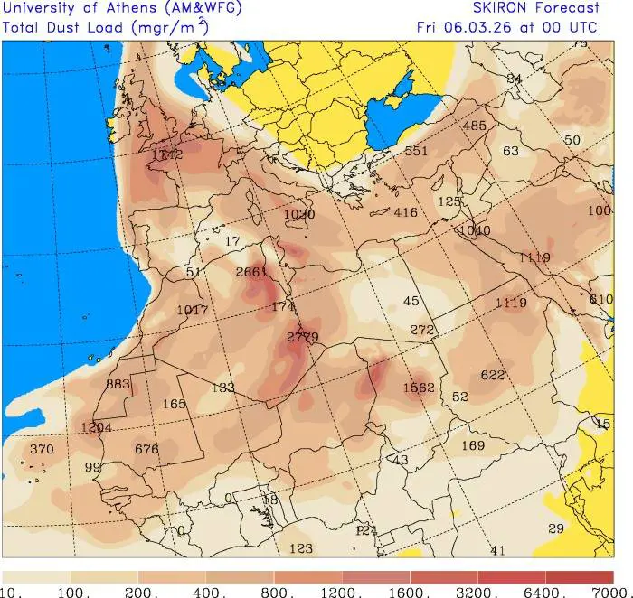 Su molte regioni si può osservare un cielo “giallognolo”: durante le precipitazioni previste nelle prossime ore auto e balconi saranno ricoperti da questo strato, osservabile soprattutto quando finirà di piovere. “È colpa della sabbia del deserto. Il ciclone sta richiamando correnti sciroccali cariche di pulviscolo sahariano. Questa sabbia in sospensione è così abbondante e spinta così a nord dalle correnti d'alta quota che raggiungerà incredibilmente persino i cieli della Penisola Scandinava, rendendo l'atmosfera giallognola su mezza Europa”, spiega Lorenzo Tedici de Ilmeteo.it