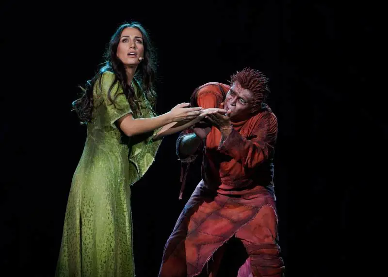 Tra i protagonisti della storia c'è la bella zingara Esmeralda, che combatte per la sua gente e fa battere il cuore anche al mitico campanaro della cattedrale di Parigi, il Gobbo Quasimodo (qui il veterano del ruolo Giò Di Tonno). Il suo volto e la sua voce sono quelli di Elhaida Dani, giovane perfomer albanese che, però, è una vecchia conoscenza di Cocciante.
