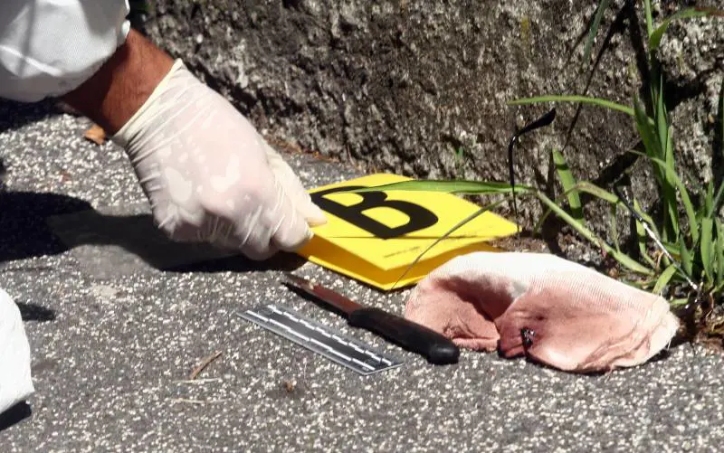 Un coltello di 20 cm Il marito aveva una finta fasciatura al braccio che gli sarebbe servita per nascondere il coltello.