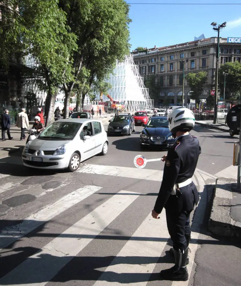 Il primo vero test per l'isola pedonale di piazza Castello è andato bene, ma con un mezzo trucco. Al primo giorno lavorativo non si sono rilevati particolari problemi di traffico, ma è anche vero che intorno alla piazza si trovava un vigile ogni cinquanta metri. Le divise erano dozzine. Fuori dal Castello, su Foro Bonaparte e nelle zone limitrofe, in alcuni momenti della giornata erano quasi più le auto della Polizia locale di quelle di cittadini e turisti. Uno schieramento imponente per non fallire la prova del nove che sembra aver funzionato, come ha rilevato il comandante della municipale Tullio Mastrangelo: «Non abbiamo rilevato problemi particolari alla mobilità» ha dichiarato davanti alle telecamere.