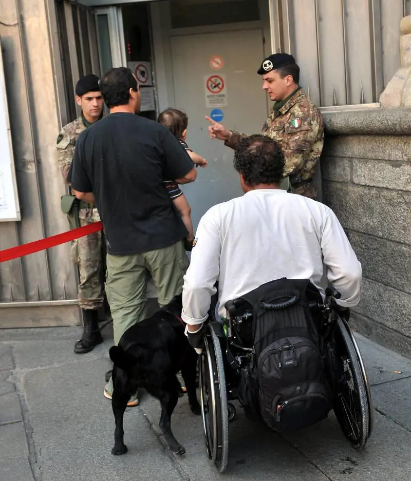 A Palazzo della Ragione ci sono quattro scalini impossibili da superare. Un grande classico, a detta di Enzo che, qualche tempo fa, ha avuto qualche problema anche ad entrare al Castello Sforzesco dove poi gli addetti alla sicurezza lo hanno aiutato utilizzando una semplice pedana di legno. «Tante volte - spiega - basterebbe una pedana di legno. Certo, la burocrazia dovrebbe essere meno rigida. Mi è stato spesso detto che la pedana non si può usare per ragioni di sicurezza, perché se qualcuno si fa male non cè la copertura assicurativa». Di fatto la pedana, ci spiega poi un barista, è unoccupazione di suolo pubblico e può essere pericolosa per chi cammina. «Sa, magari qualcuno inciampa».