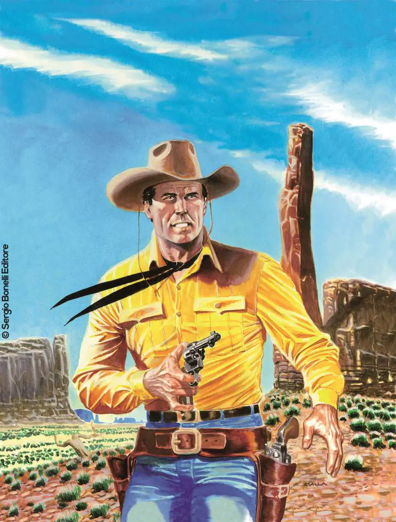 La risposta è sicuramente lì, appostata nei saloni della Permanente di via Turati, nella sfolgorante celebrazione del mito con la Colt: tra decine di tavole originali e prime edizioni ormai introvabili, interviste, intere sequenze che raccontano l'evoluzione grafica e narrativa della saga iniziata nel grande salotto di via Saffi dove Gianluigi Bonelli e Aurelio Galeppini tennero a battesimo il ranger. Era il 1948, e i piccoli album formato strip portavano il marchio delle Edizioni Audace.