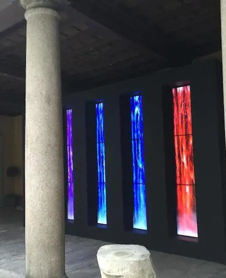 La vocazione neomecenatistica delle banche, che a Milano vanta una solida tradizione (basti pensare alle Gallerie d'Italia), lancia un nuovo segnale nell'esperienza di Banca Generali che ha piuntato su un testimonial altisonante, Fabrizio Plessi. L'artista emiliano è noto al grande pubblico per le sue scenografiche installazioni digitali, memorabile quella realizzata nel Duemila per il padiglione italiano all'Expo di Hannover, un «Mare blu verticale» in flusso continuo; nel 2011, al Padiglione Venezia della 54ª Biennale, le sue cascate virtuali furono invece proiettate all'interno di una serie di imbarcazioni rovesciate. Per non parlare di quando a Venezia, sua città di adozione, «accese» tutte le finestre dei palazzi affacciati su piazza San Marco nell'opera Waterfire . «Gli elementi primordiali, soprattutto l'acqua e il fuoco, sono sempre stati i temi su cui ho sviluppato i miei interventi ambientali - racconta Plessi - sfruttando quasi sempre la chiave site specific , ovvero architetture e oggetti preesistenti; per questo, quando la Generali Private Banking mi ha chiesto di intervenire nei suoi uffici ho avuto un attimo di defaillance». Subito superata, ça va sans dire , semplicemente modificando i media ma lasciando intatta la potenza emozionale che costraddistingue il suo lavoro.