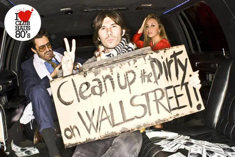 L’appuntamento è venerdì sera ai Magazzini Generali con un party ispirato ai super manager di Wall street. Una caricatura degli arrivisti del mondo della fanta-finanza e della Milano con l’orologio sul polsino. Tutti in discoteca con i capelli perfettamente gellati, le banconote (del Monopoli) nel taschino e i quotidiani di economia sotto braccio. Ovviamente con pupe al seguito. I più estrosi potranno anche portarsi in pista i cellulari-citofoni di una volta da veri Yuppies, giusto per chiedere informazioni sulle borse asiatiche, in perfetto stile Gordon Gekko.