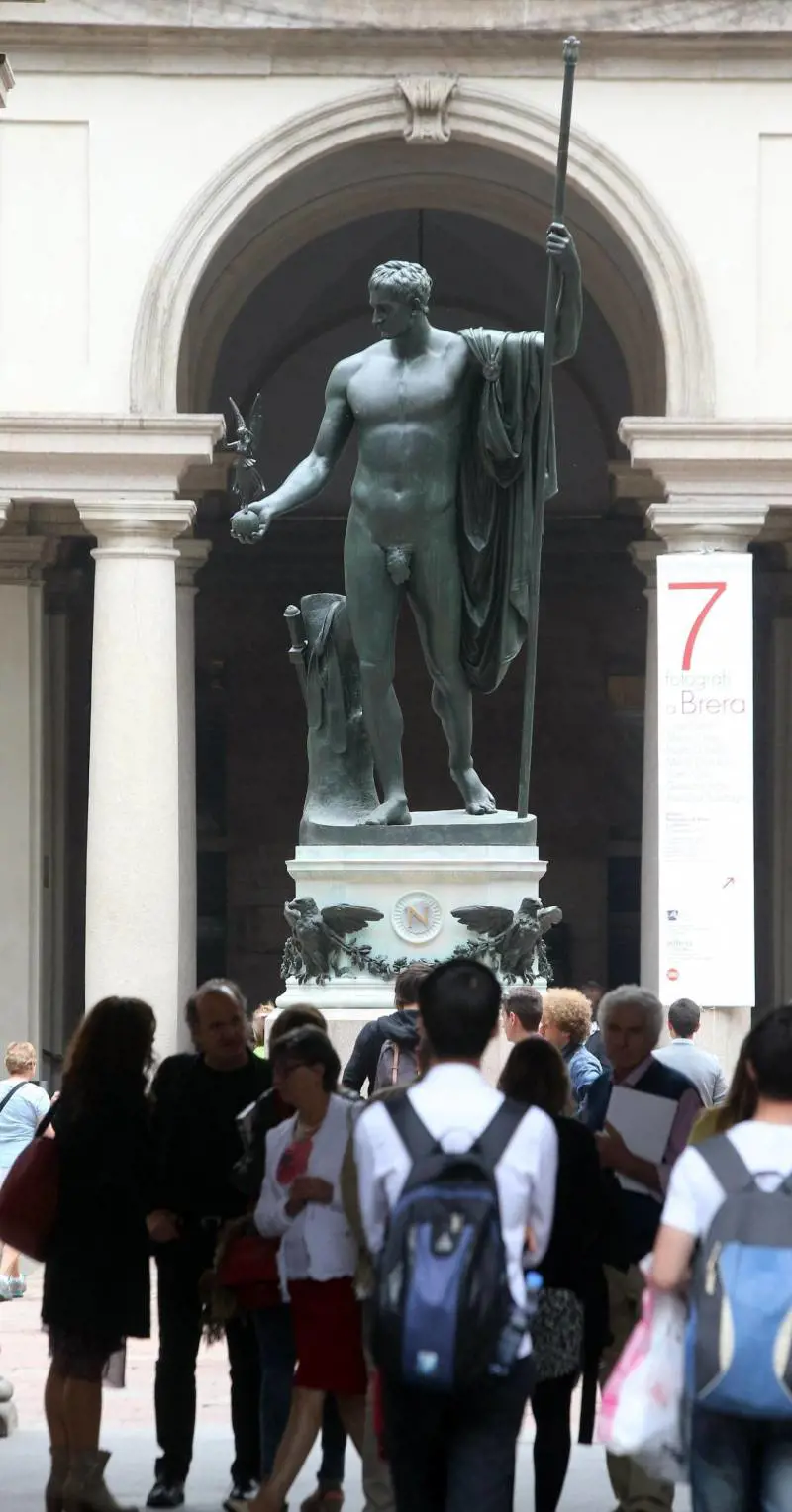 Ci sono voluti quindici mesi, e il Napoleone di Brera è tornato a splendere. Ne è valsa la pena, visto che a suo tempo Antonio Canova fu profumatamente pagato per realizzare il «Napoleone in veste di Marte Pacificatore». Ottenne l'equivalente di un miliardo e duecento milioni di oggi che lo scultore maniacale nella realizzazione dei suoi lavori in parte investì per la colatura al bronzo della statua. Canova voleva infatti imitare gli antichi nei temi e anche nei modi di scolpire. Tuttavia, riprodurre una fusione con unico getto di una statua così grande, e in un metallo così pregiato come il bronzo, non fu facile. Il primo tentativo andò a vuoto, il secondo riuscì, a Roma, e la statua arrivò a Milano dopo un rocambolesco viaggio, trainata su carri. Era il 1812, ed erano passati solo sei anni da quando l'opera fu commissionata all'artista, ma tutto era improvvisamente cambiato: il fulgore napoleonico a Milano (con la creazione della Pinacoteca di Brera e Foro Bonaparte) era assai sbiadito e l'opera, pensata per il palazzo del Senato, rimase a lungo imballata. Maestosa e vigile, approdò a Brera solo nel 1859 e lì è rimasta: «ignuda e sublime», come voleva il Canova.
