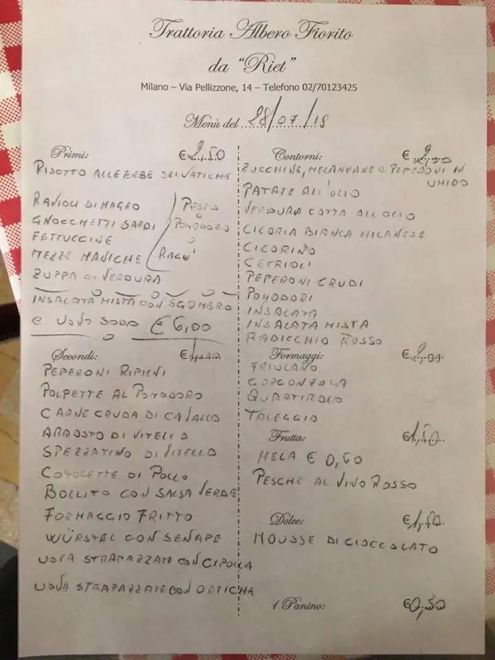 Le foto che i clienti postano sui social, come ricordi di un parente appena scomparso, sono quelle dell'eterna cucina popolare: le zuppe di cipolle, la lingua salmistrata con la salsa verde, il fegato con le cipolle. L'Albero andava avanti così dagli anni Sessanta, quando Ernesto e Maria Riet erano arrivati dal Friuli a Milano, portando con loro l'amore per le cose fatte bene. «Un antidoto alla solitudine, un rifugio del cuore, l'occasione per lanciarsi in accese discussioni o lasciarsi andare a grandi baldorie, senza però mai trasgredire le ferree regole di casa Riet»: così ieri la ricorda una degli avventori.