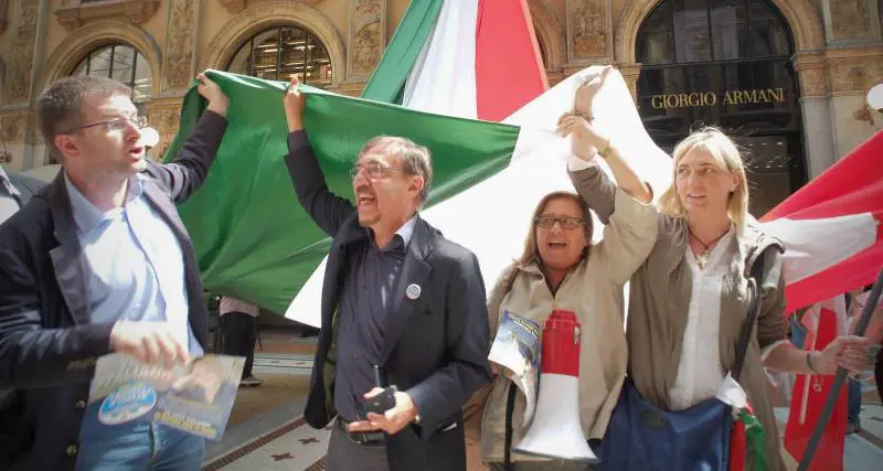 Un Tricolore lungo 60 metri per 8 quello fatto sfilare ieri dalla Galleria Vittorio Emanuele fino a piazza san Babila da Fratelli d'Italia che con il presidente Ignazio La Russa ha chiuso a Milano la campagna elettorale. Con lui l'onorevole Paola Frassinetti e il candidato alle elezioni europee Carlo Fidanza e il vice presidente del consiglio comunale Riccardo De Corato che in testa al corteo tenevano lo striscione «Io voto italiano».