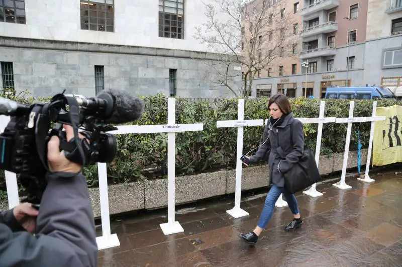 Dieci croci in legno davanti al tribunale, tante quanti i lavoratori della Scala uccisi dall'amianto: così parenti delle vittime e dirigenti sindacali hanno fatto sentire ieri mattina la loro presenza nel processo, finalmente avviato dopo una serie di inciampi, ai vertici del Teatro, accusati di omicidio colposo per avere consapevolmente tollerato la presenza di amianto. Mentre quattro ex sindaci (Carlo Tognoli, Paolo Pillitteri, Gian Piero Borghini e Marco Formentini) sono stati prosciolti al termine delle indagini preliminari, sul banco degli imputatati sono stati chiamati l' ex sovrintendente dell'ente scaligero Carlo Fontana e altri quattro dirigenti.