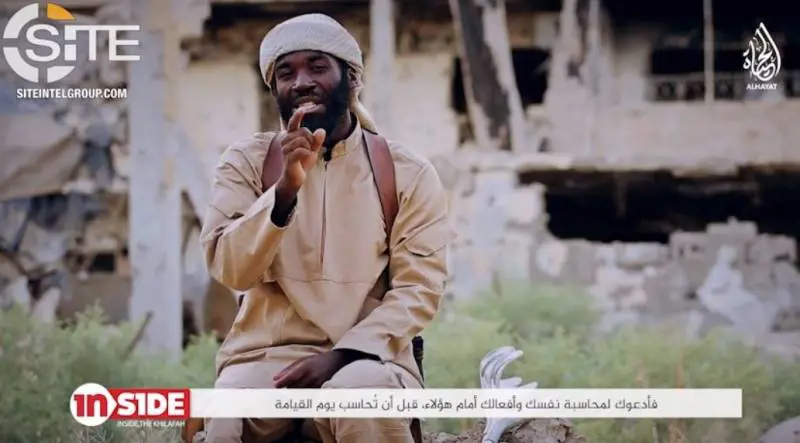 Il combattente americano Abu Salih al-Amriki nel video diffuso dallo Stato Islamico chiama il presidente statunitense Donald Trump "cane di Roma".