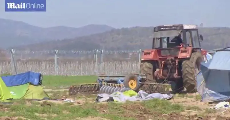 Non ne può più di vedere il suo campo occupato dai profughi. Ha bisogno di ararlo per prepararlo alla calda estate in arrivo. E così ha preso il trattore e, incurante delle tende dei migranti, ha cominciato a smuovere il terreno. Abbattendo, quando capitava, anche alcune tende.