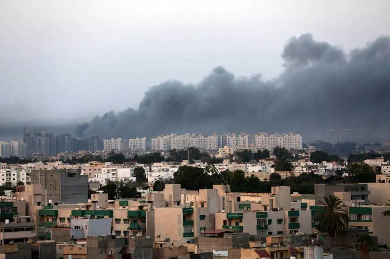 Due raid aerei nella giornata di ieri hanno ucciso 20 miliziani islamisti e colpito anche il ministero dell'Interno in mano alla coalizione Alba. Gli attacchi dal cielo sono stati rivendicati dal generale Khalifa Haftar, che combatte da mesi a Bengasi contro le forze jihadiste ispirate dal Califfato. L'ufficiale è alleato con la milizia di Zintan, che cerca di tenere l'aeroporto di Tripoli, nella coalizione nazional liberale e filo occidentale della Dignità. Haftar è appoggiato dall'Egitto. Non è chiaro se i caccia che bombardano Tripoli siano pilotati dai suoi uomini o decollino dalle basi del Cairo o addirittura dall'Algeria.