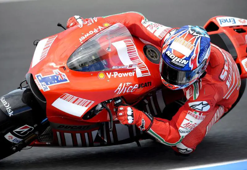 Philip Island - Valentino nella ghiaia, Stoner in pole position. Non è un gran risveglio quello del neo campione del mondo della MotoGp nella prima gara dopo l'alloro conquistato in Giappone. Una caduta nelle fasi finali del turno di qualificazione non ha consentito a Rossi nemmeno di lottare per la pole position del Gp d’Australia. In prima posizione Casey Stoner, al suo ottavo centro stagionale in qualifica, autore del giro più veloce in 1'28"665. L’australiano della Ducati ha preceduto d’un soffio lo spagnolo Jorge Lorenzo (Yamaha, a 0"069) e lo statunitense Nicky Hayden (Honda, a 0"091). Nonostante un ultimo tentativo, Rossi ha concluso solamente 12esimo. Meglio di lui hanno fatto Andrea Dovizioso (Honda), ottavo miglior tempo, il sammarinese Alex De Angelis (Honda), decimo, e Loris Capirossi (Suzuki), 11esimo. Ennesima delusione per Marco Melandri (Ducati), 17esimo e penultimo.