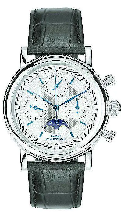 Il brand Capital, lanciato nel 1988 dalla Bianchi Orologerie e rappresentativo di uno stile e di un gusto squisitamente italiani, nel tempo si è sviluppato e completato e, oggi, propone un ampio spettro di alternative, dai tasca in argento alla collezione Ceramica, passando per raffinati esemplari meccanici manuali e automatici. Comune denominatore è l'eccellenza del rapporto qualità/prezzo, dettaglio al quale non sfugge il cronografo con datario analogico e fasi lunari in acciaio, appartenente alla linea Retrò, meccanico manuale.