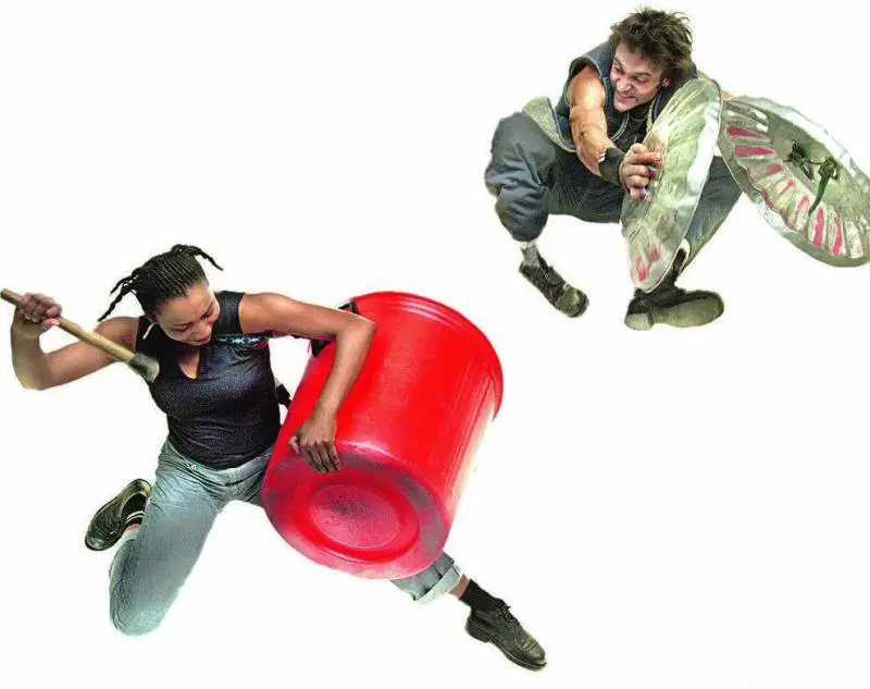Stomp, larte del rumore. Bidoni della spazzatura percossi come tamburi da una tribù metropolitana che segue il linguaggio ancestrale del corpo, armonizzandolo al ritmo del sangue in circolo e al battito di percussioni casalinghe. Spazzoloni sfregati con energia sul pavimento bruno, luccicanti coperchi di metallo fatti suonare come gong, sbattuti luno contro laltro con slancio tribale. E poi tubi, lavandini, manici di scopa, pneumatici. Tutti oggetti di uso quotidiano percossi, sbattuti, martellati ad arte, che in scena diventano strumenti in grado di trasformare il rumore molesto in melodia urbana; una sorta di rap anticonvenzionale in cui a «parlare» sono solo i corpi e gli oggetti: il battito delle mani, il tambureggiare dei piedi e i suoni metallici di unorchestra allestita con materiali di scarto. Una giungla melodica e «verde» nientaffatto disturbante, quella fatta fiorire sulle ribalte internazionali dagli Stomp, il popolare gruppo di performer inglesi celebri per aver trasformato larte del riciclaggio in urban style (e il baccano in musica) che a grande richiesta torna a esibirsi da oggi al 17 maggio sul palcoscenico del teatro Olimpico per un show-concerto di grande intensità. Celebri da Broadway a Parigi e da Los Angeles a Tokyo, gli Stomp lanno scorso hanno fatto il bis a Milano, insieme con Legambiente, dando vita a I Lav Milan. Oggi? La loro «mission» ecologista prosegue in scena, obiettivo: liberare il sound quotidiano del Duemila con lintensità di vibrazioni quotidiane, ma sconosciute, e dare ossigeno al pianeta. Antinquinamento e lotta agli sprechi urbani, stupore e meraviglia. Fedeli a questa filosofia di vita, 17 anni fa gli Stomp rivoluzionarono l'arte di Tersicore mescolando con furia creativa numeri di alta acrobazia e musica rock, circo e teatro, improvvisazione e flamenco, odore d'asfalto ed echi metropolitani. Oggi, più in forma che mai, il gruppo creato a Brighton nel 91 dagli eclettici Luke Cresswell e Steve McNicholas propone uno spettacolo a metà tra il concerto sinfonico, realizzato in puro stile videoclip, e un forsennato rito tribale. Il tutto senza aprire bocca, usando come canovaccio solo il rumore martellante della voce della città mixato all'umorismo del cinema muto, imprestato alla Pop Art. Lo show allestito dagli Stomp è una street dance ad alto impatto, svincolata dalle mode e dagli stili.