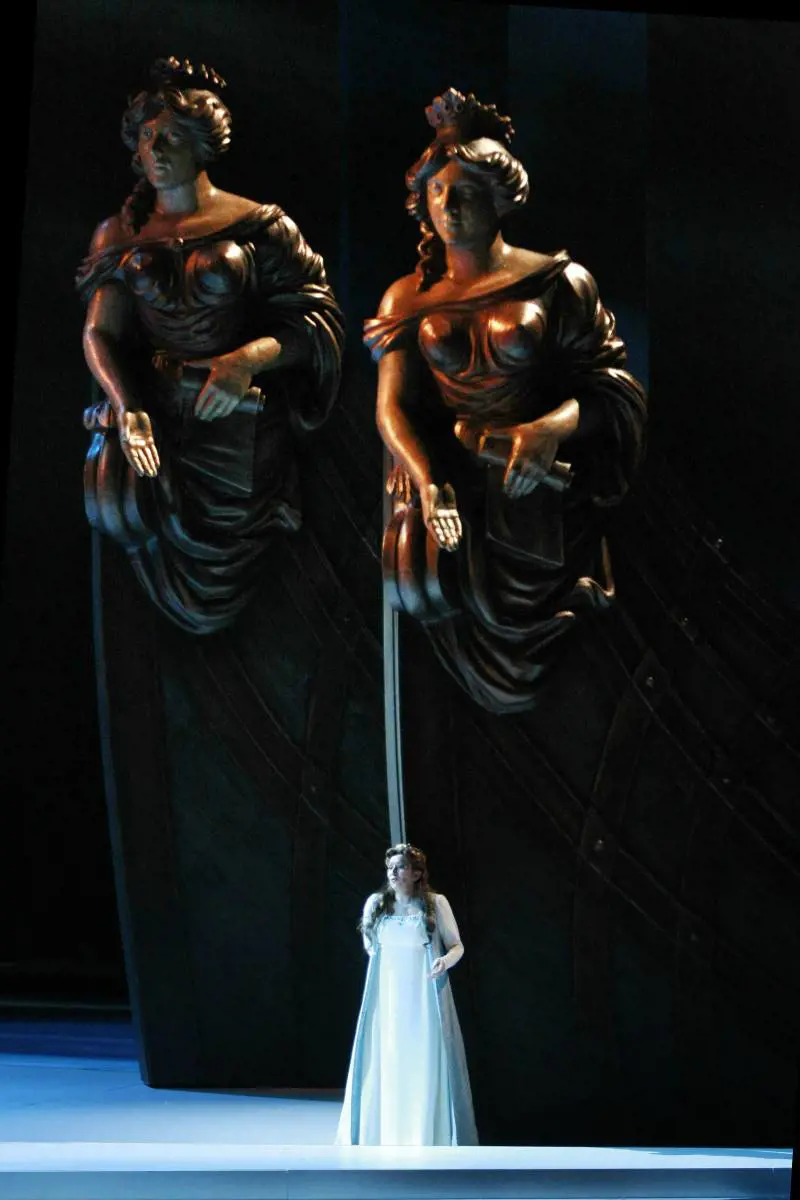 Dimenticata Aida - regia di Wilson e direzione di Oren - che sembrò cancellare in un colpo la bella prestazione dell’Opera di Roma registrata nell’Otello di Verdi diretto da Muti, dopo questa perfetta Ifigenia finalmente si potrà tornare a parlare di riscossa, di nuovo corso, se la dea Diana, appagata dalla generosità di Ifigenia, compirà il miracolo di legare il nome di Muti a quello dell’Opera di Roma con un incarico di direttore musicale. È ciò che tutti vogliono, e non mancano segnali positivi. La scena si presenta spoglia, immersa in un azzurro denso, il mare, che sancirà la vittoria o la sconfitta di Agamennone, in attesa di salpare, col favore di Diana e dei venti, contro Troia. A guardia, sporgenti polene di navi, con la figura gigantesca e minacciosa della dea.
