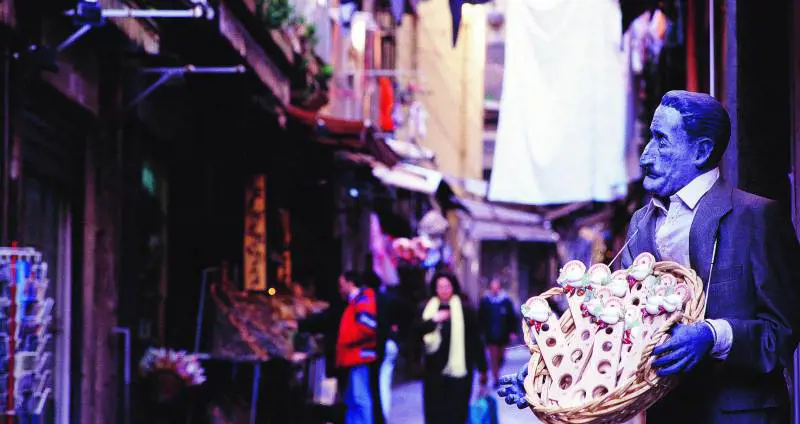 Gli articoli più venduti sono i bastoni da passeggio, le scarpe - soprattutto sportive - e le cinture. Migliaia, milioni di cinture. E di scarpe. E di bastoni, perché qui molta gente cammina zoppa, perché qui gli zoppi hanno ancora un posto nella vita di tutti, perché qui la vita viaggia a una velocità che permette agli zoppi di resistere. I due mercati paralleli sono il segno che qui a Napoli esiste ancora il popolo. Nel popolo i poveri e i benestanti si mescolano, vivono nelle stesse case, camminano per le stese strade, parlano la stessa lingua.