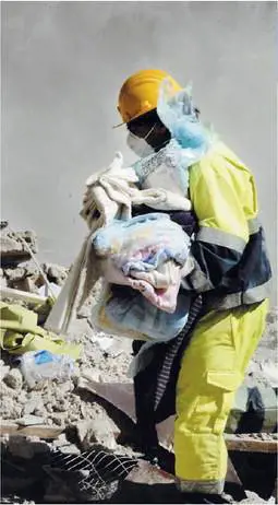 Sentimenti contrastanti si dibattono in questa donna esile e provata dalla sofferenza. Nel crollo Carmela ha perso la madre, Anna Cuccurullo, ma l’incubo di vedere anche una figlia morta si è trasformato in gioia quando dalle macerie è giunto l’urlo di un pompiere: «La bambina è viva».